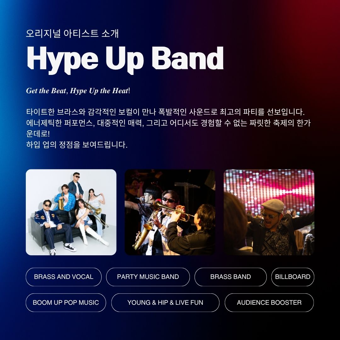 하입업밴드의 사운드에 몸을 맡기세요. 하입업의 정점을 지금 바로 느껴보세요!